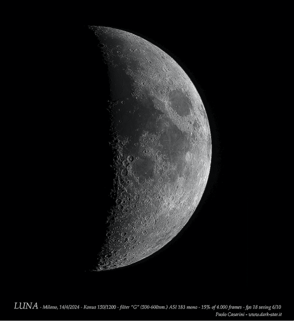 Non si tratta di “capolavori” ma, considerando che nei primi sette mesi del 2024 praticamente (con la sola eccezione di gennaio e un paio di settimane in febbraio) non si è mai visto il cielo e quando la Luna faceva capolino tra le nuvole il seeing era tale da “sventolare bandiera bianca”, si può affermare che il grado di resa del Konus da 15 cm. sia convincente e soddisfacente.
