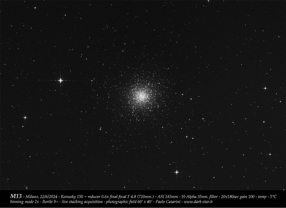 SOPRA: immagine dell'ammasso globulare M13 in Ercole.