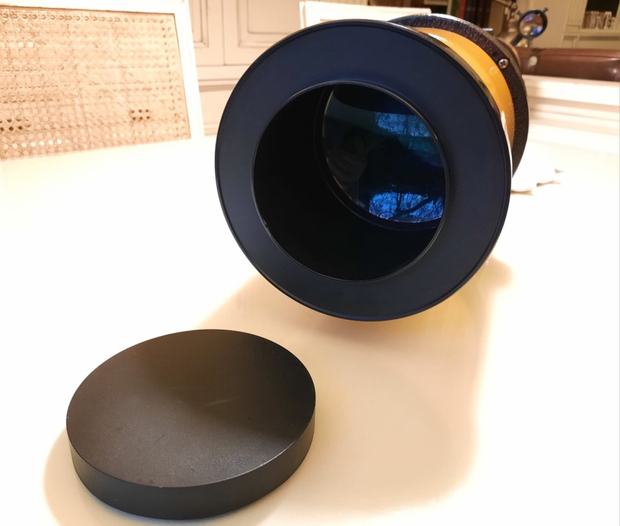 Il doppietto frontale è un diffuso Synta da 15 cm. acromatico in configurazione Fraunhofer con tre separatori classici in foglio di alluminio. Il trattamento antiriflesso, già di tipo multistrato,