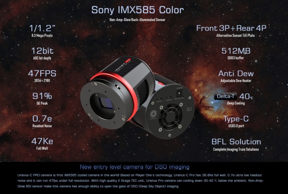 La PlayerOne Uranus-C, più “pulita” rispetto alla versione ZWO non raffreddata, ha permesso pose